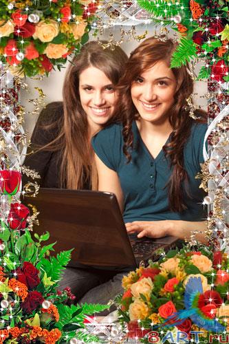 Нежная рамка к Фотошопа от букетом красных роз равным образом двумя надписями от днем рождения равным образом из днем Валентина для Ваш выбор