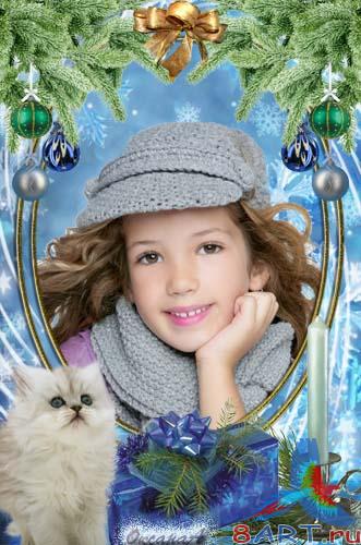 Новогодняя рамка ради фотошоп – дар с кота