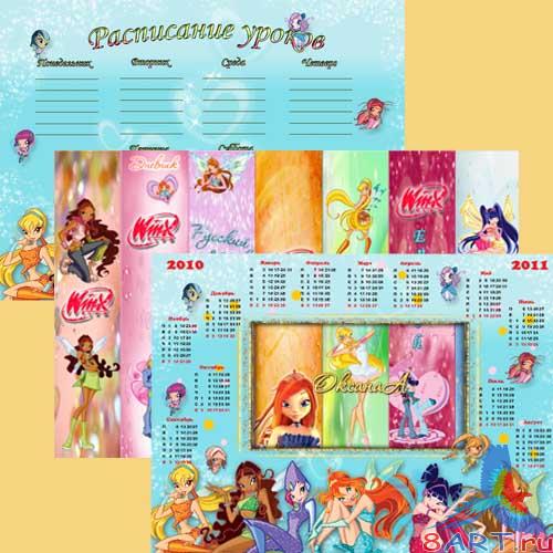 план уроков, закладки также рамка - книга для 2010-2011 год к фотошоп - Winx