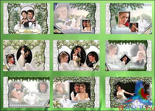 Фоторамки на светло-зелёных тонах в интересах свадебного фотоальбома.