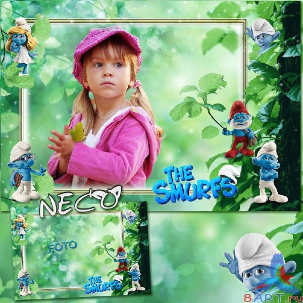 Детская фоторамка со смурфами - в течение чудесном лесу