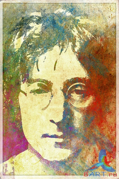 Далее, открываем фотографию Леннона и вставляем ее в документ с текстурой, причем так, чтобы слой с фото был верхним.