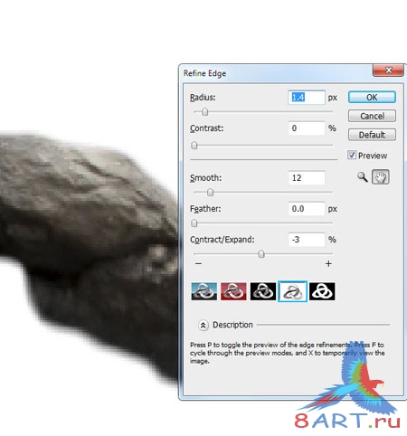 Края можно сделать еще лучше, использовав команду Усовершенствованные края (Refine Edge, на клавиатуре - CTRL+ALT+R).