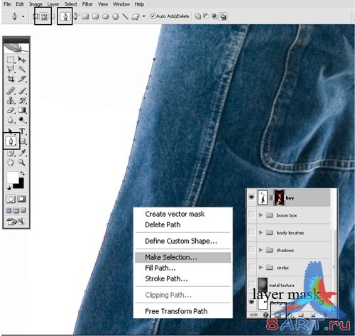 Открываем фотографию человека (можно свою) и вставляем его в рабочий документ. Назовем этот слой «Boy». Теперь нужно отделить человека от фона. Для этого вы можете воспользоваться любым подходящим инструментом. В уроке использовалось Перо (Pen Tool, клавиатурное сокращение - P) для того, чтобы создать маску слоя. То есть, рисуем контур, преобразовываем его в выделение (Ctrl + Enter), после чего добавляем пиксельную маску. В результате то лишнее, что за пределами выделение, будет спрятано.