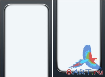 Ниже динамика смартфона находится экран, к созданию которого мы и приступим. Создаем новый слой с именем screen и в середине черного основания с помощью Закругленного прямоугольника (Rounded Rectangle Tool) с радиусом 2px создаем фигуру (см. скриншот). Теперь берем Кисть (Brush Tool), устанавливаем ей радиус величиной 2px, а цвет - #666666. После этого из панели инструментов берем Перо (Pen Tool) и правой кнопкой мыши щелкаем по только что созданному прямоугольнику. В выпавшем контекстном меню нужно выбрать пункт Обводка контура (Stroke Path), а в открывшемся окне - Кисть (Brush).