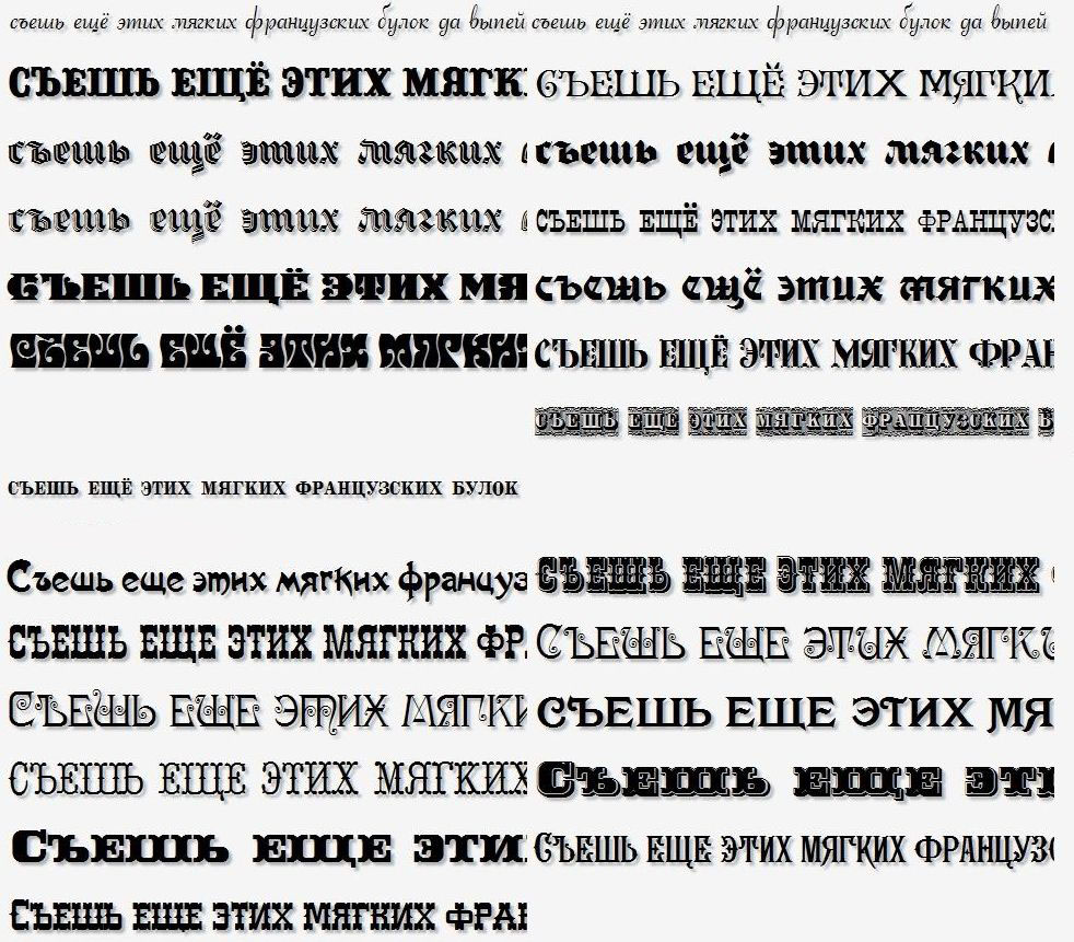 Шрифты помеченные (*) кроме кириллицы поддерживают языки народов РФ: