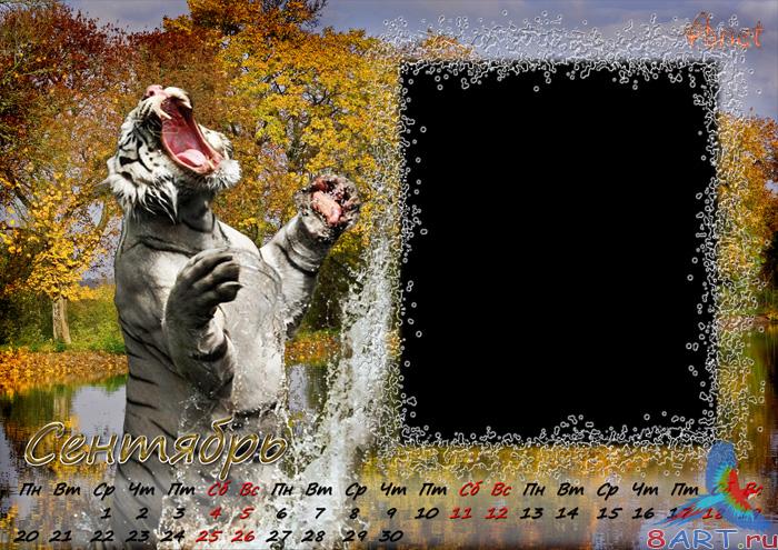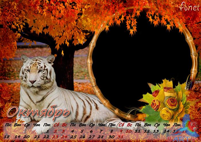 Календарь в 2010 год сообразно месяцам от вашим фото равным образом белым тигром.