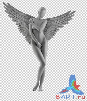 Откройте Цветовую палитру (Сolor Picker) и выберите серый цвет без примеси каких либо других оттенков и залейте им новый слой. Продублируйте слои с человеком и крыльями и выполните команду Соединить слои (Merge Laers). Все дальнейшие действия мы будем производить с этим вновь полученным слоем, изменять цвет, накладывать текстуру. Могут быть два варианта. Первый - накладывать Обтравочную маску (Clipping Mask)на слои с текстурами. Второй – при активном слое с изваянием выполнить команду Выделить прозрачность слоя (Select Layer Transparency), удерживая клавишу Ctrl кликнуть по его миниатюре, затем перейти на слой с текстурой и очистить все лишнее.