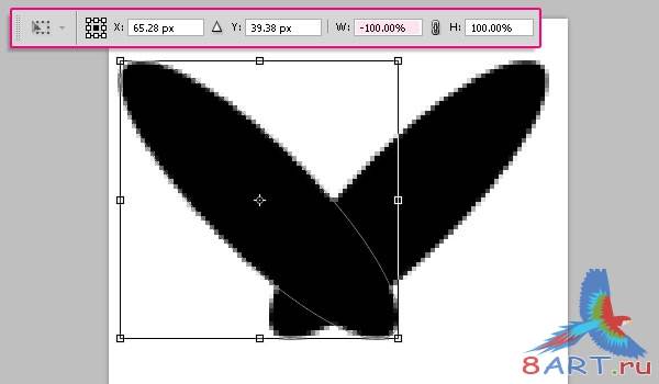 Нажмите Ctrl/Cmd + T, чтобы перейти к свободному трансформированию (Free Transform Mode ). Поверните эллипс на 45 ° по часовой стрелке. (Вы можете обозначить значение Вращения,выбрав Варианты наверху). Нажмите Enter, чтобы принять и выйдите из Свободного трансформирования.