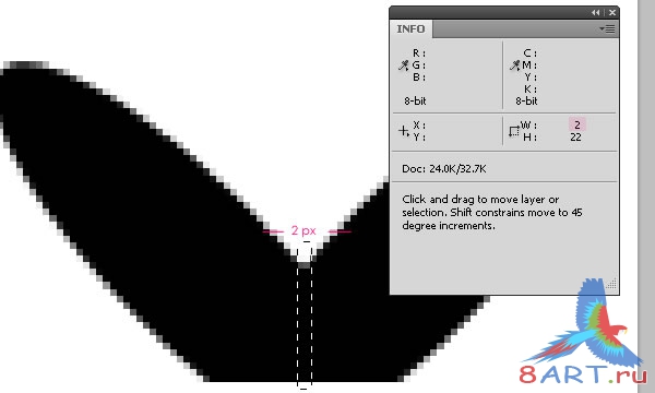 Еще раз воспользуйтесь Rectangular Marquee Tool чтобы выделить среднюю часть стежка. Ширина выделяемой рамки должна быть приблизительно 2 px.