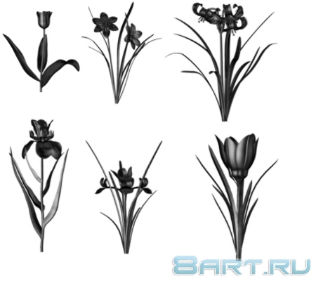В наборе содержится десять кистей с изображением очертаний цветов, если вам нужно нарисовать изящный цветок, то эти кисти то что вы искали, размер кистей достаточно большой что бы удовлетворить ваши потребности. Средний размер кистей составляет 600 пикселей.