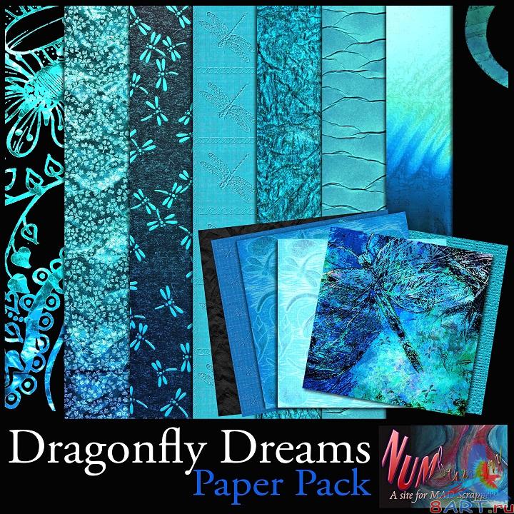 Скрап ассортимент на бирюзовом цвете, со стрекозами