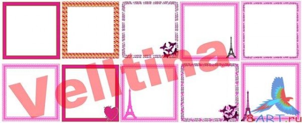 Размер рамок 3000х3000, 900х900| 10 PSD + 10 JPG | 33,6 MB | Velltina