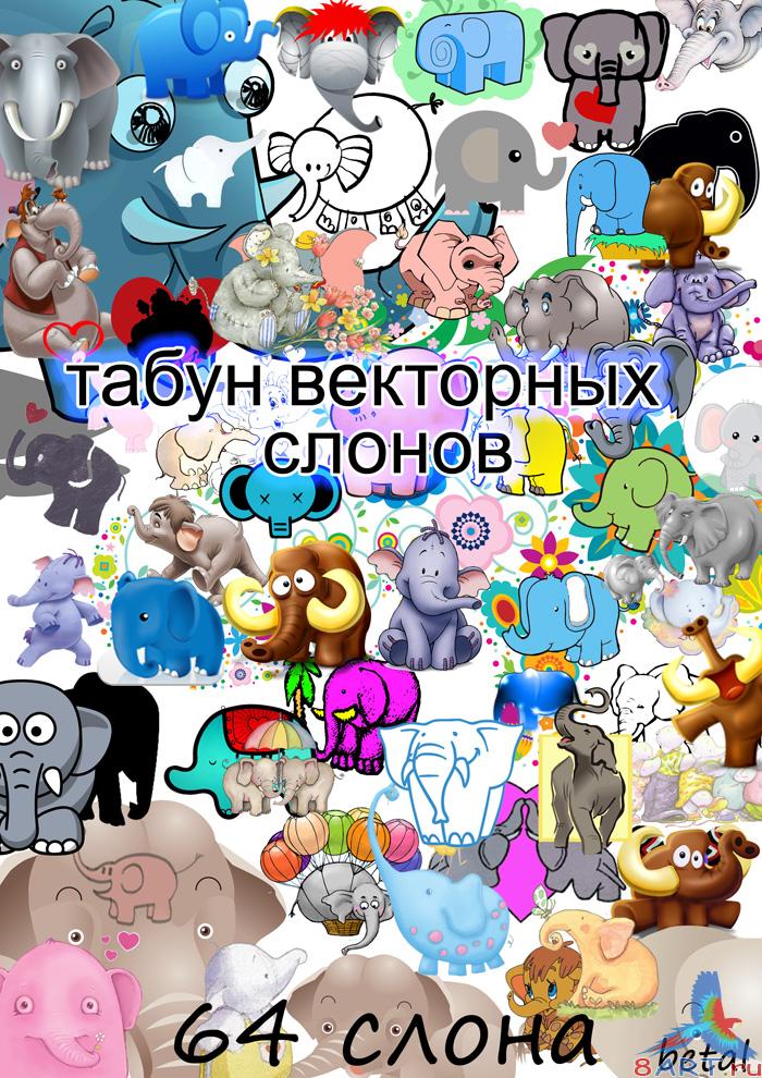 Табун рисованных слоников для совершенно случаи жизни. Архив состоит с 64 животного