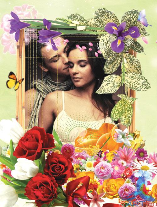 PSD рамка в видах оформления фото - Белые розы