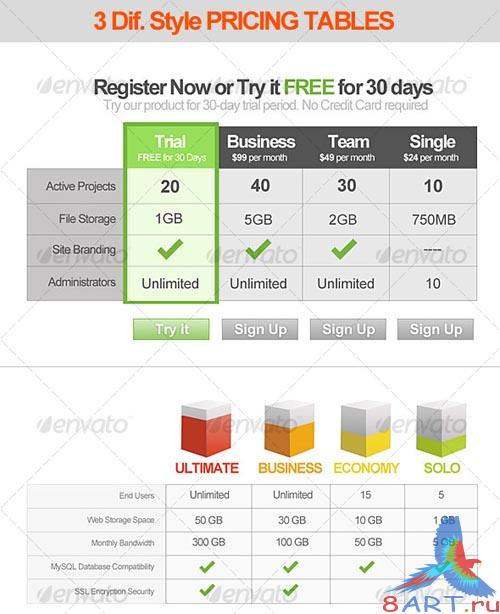 GraphicRiver - 3 Style Modern Pricing Table designs