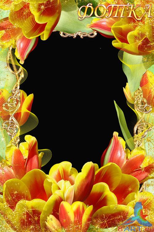 Цветочная рамка в пользу кого фотошоп почти жёлто-красными тюльпанами