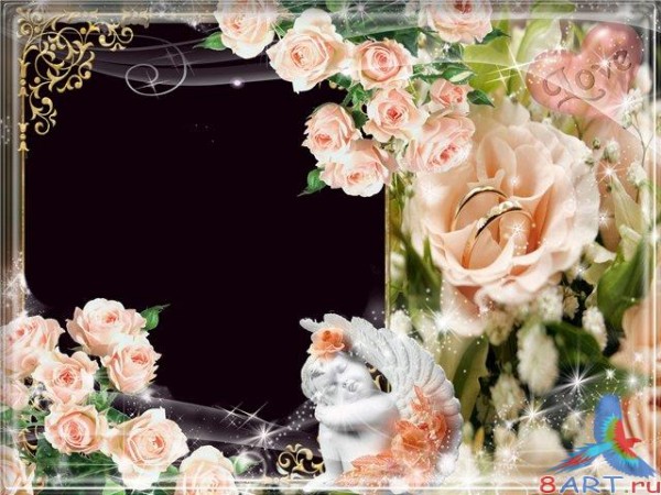 Рамка к фото – Свадебный ангел, вставьте фотографию также около