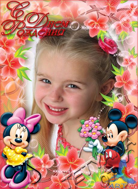 Детская рамочка на фотошоп - Микки Маус равно друзья