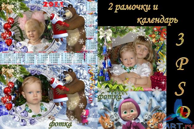 Новогодние детские рамочки также книга от Машей равно Медведем