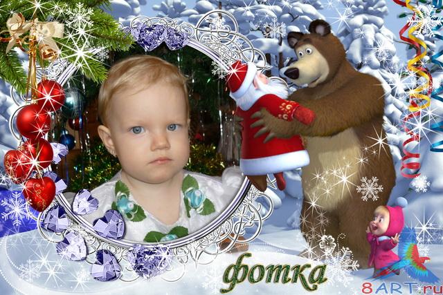 Новогодняя фоторамочка начиная с Машей также Медведем