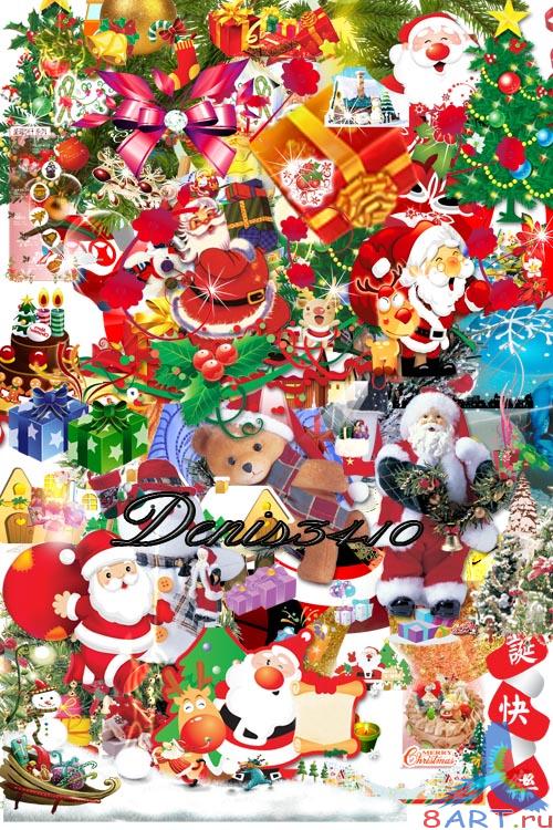 Новогодний клипарт. 131 элементов в прозрачном фоне