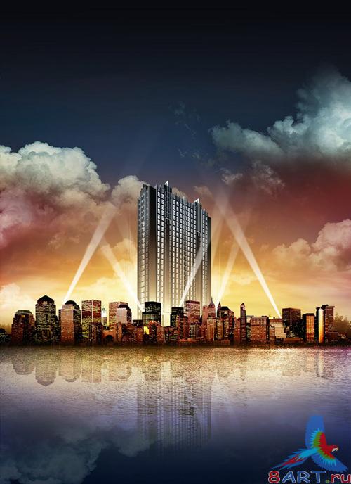 PSD Исходник - житель из-за Озером. Плакат Недвижимости