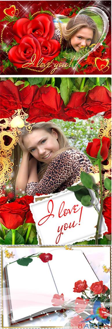 Качественные также красивые рамки в видах фотошопа - Страстные красные розы