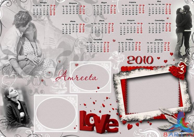 PSD исходник в интересах календаря 2010 ко дню Св. Валентина