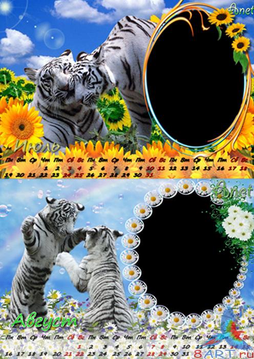 Календарь для 2010 год до месяцам из вашим фото равным образом белым тигром.