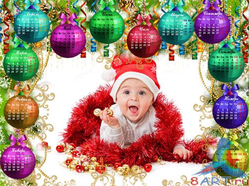 Красивая новогодняя рамочка в видах фотошопа начиная с ёлочными веточками, игрушками также дедом морозом - 2013