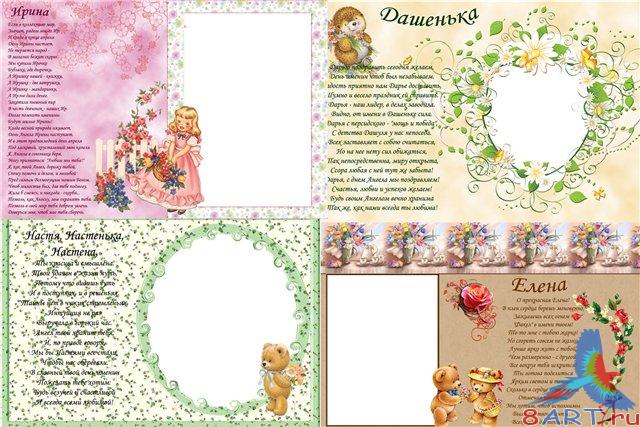 8 рамочек в пользу кого фотошоп на формате PSD из поздравлениями в течение стихах из женскими именами каждая 10х15, 300 dpi в архиве стихи повизитно поглощать равно на блокноте вес архива: 38 Mb автор: guzik