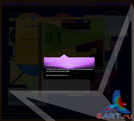 Волшебная черно-белая палочка. Ей не нужны краски. Она и так все может, поэтому фон для нее радуга, а она осуществит все радужные мечты и надежды. Зеленая стрелка показывает, где начать.