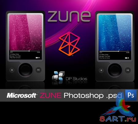 Рекламный постер с мультимедиа плеером Zune 30GB. Солидно на черном фоне. Только вы и Zune. Больше ничего не нужно.