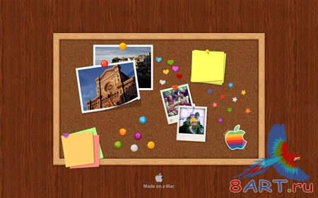 И снова Apple! На сей раз на пробковой доске с прикрепленными записками и фото. Места еще достаточно для новых идей. Да и множество разноцветных кнопок ждут пополнения.