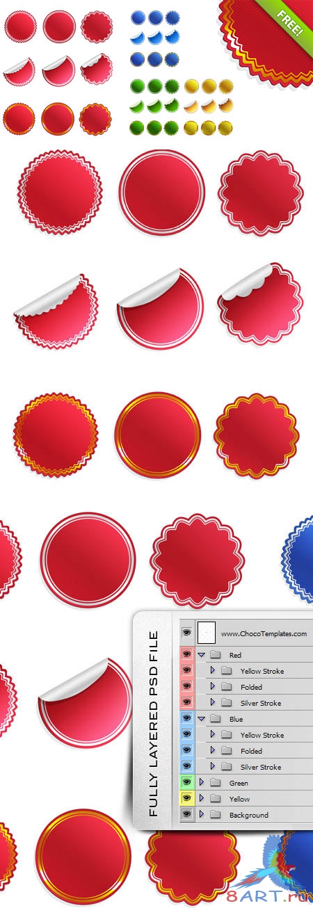 Круги и кружочки. Разного цвета и формы, «надкушенные» и с рифлеными кончиками - как пирог в форме; красные, желтые, зеленые и синие.