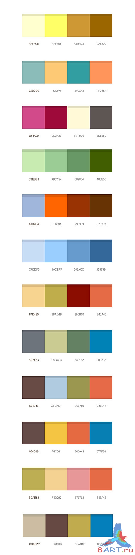 Образцы цветов с указанием параметров по шкале RGB. Выбор за Вами – или использование конкретного цвета ,или составление градиента.