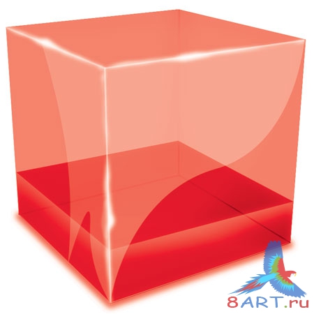 Полупрозрачный куб в переходящих красно-розовых тонах.