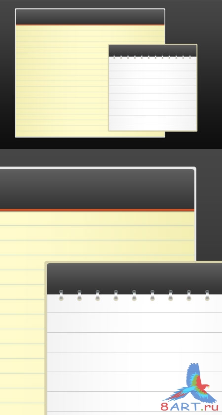 Просто два открытых блокнота различного формата с чистыми листами. Пишите, что хотите.