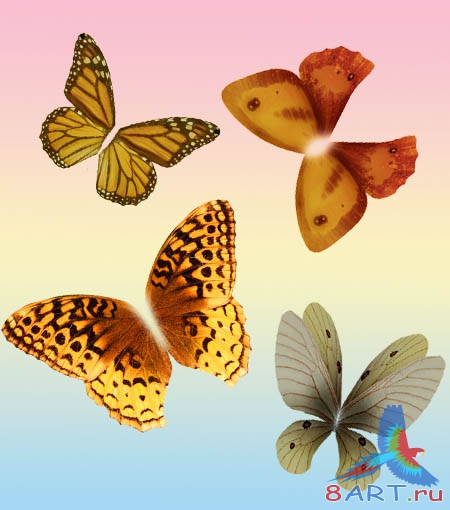 Набор psd исходником с бабочками на белом фоне, каждая бабочка на отдельном слое.