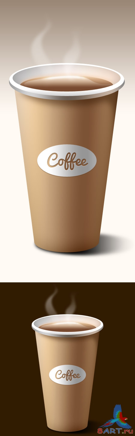 Чашка горячего кофе нарисованная в векторном редакторе.
