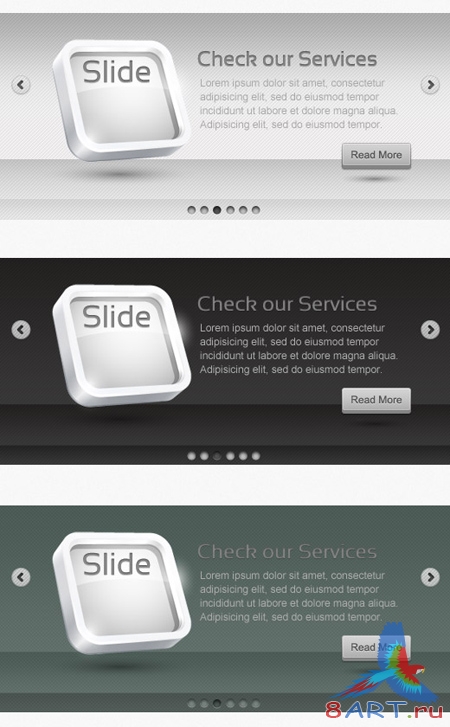 Если вы хотите разместить на своём сайте слайдер, но не хватает времени на то что бы придумать дизайн, то этот исходник будет отличным подспорьем в вашей работе.