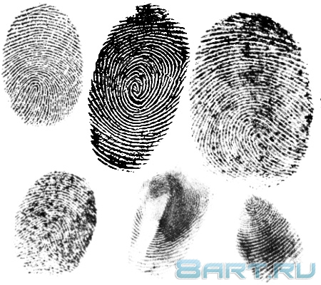 В наборе содержится семь кистей с изображение отпечатков пальцев. Средний размер кистей составляет 280 пикселей.