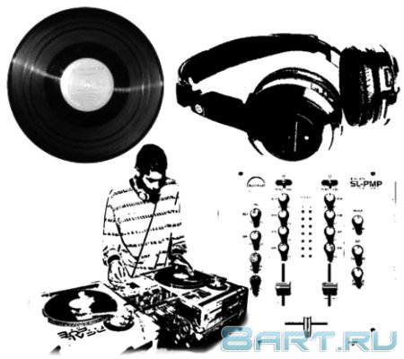 В наборе содержится двадцать кистей с изображением музыкальных пластинок, проигрывателей и многого другого связанного с музыкой. Единственное огорчение это качество кистей, для придания им полноты и изысканности придётся редактировать. Средний размер кистей составляет 300 пикселей.