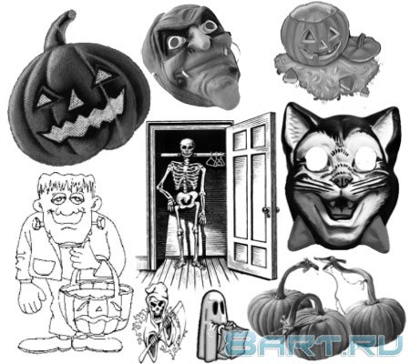 В наборе содержится одиннадцать кистей, все они прекрасно отображают атмосферу праздники Хэллоуин. Размер кистей не такой уж и большой, но, тем не менее, этот набор пригодится вам. Средний размер кистей составляет 300 пикселей.