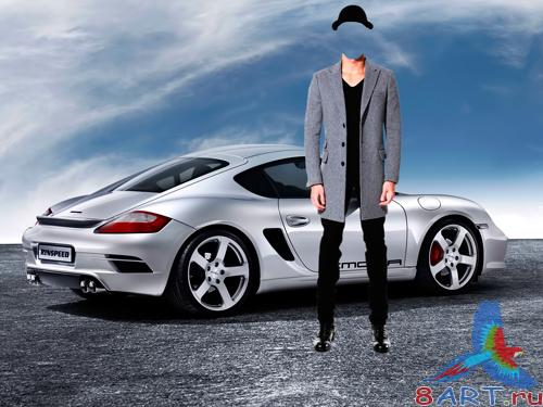 Шаблон в интересах фотошопа – Мужчина в течение шляпе близко Порше