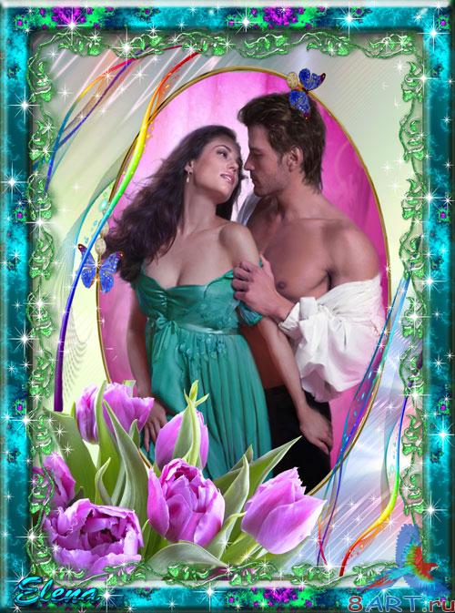 Рамка на фотошопа – Волшебство счастья счастья от великолепными тюльпанами в течение сказочном оформлении