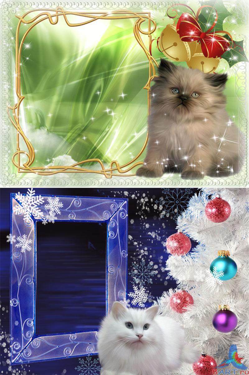 Новогодние рамки с целью Photoshop - начиная с котенком