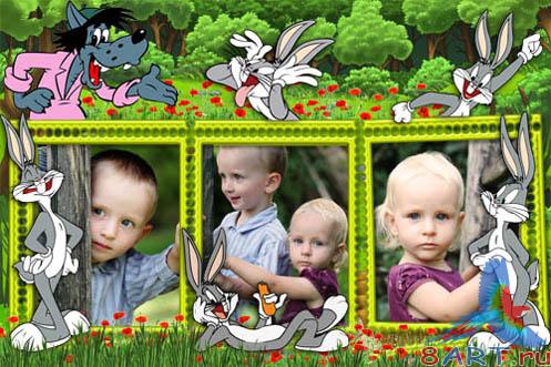 Детская рамка чтобы фотошопа начиная с волком да кроликом