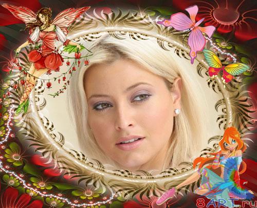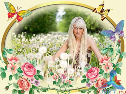 Рамка на фото Розы также бабочки